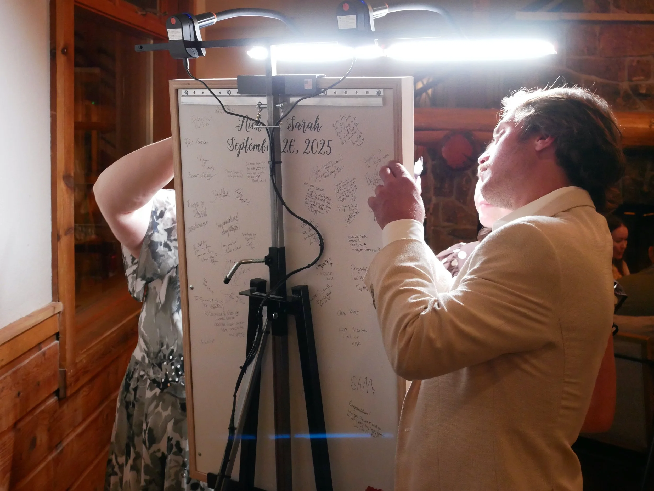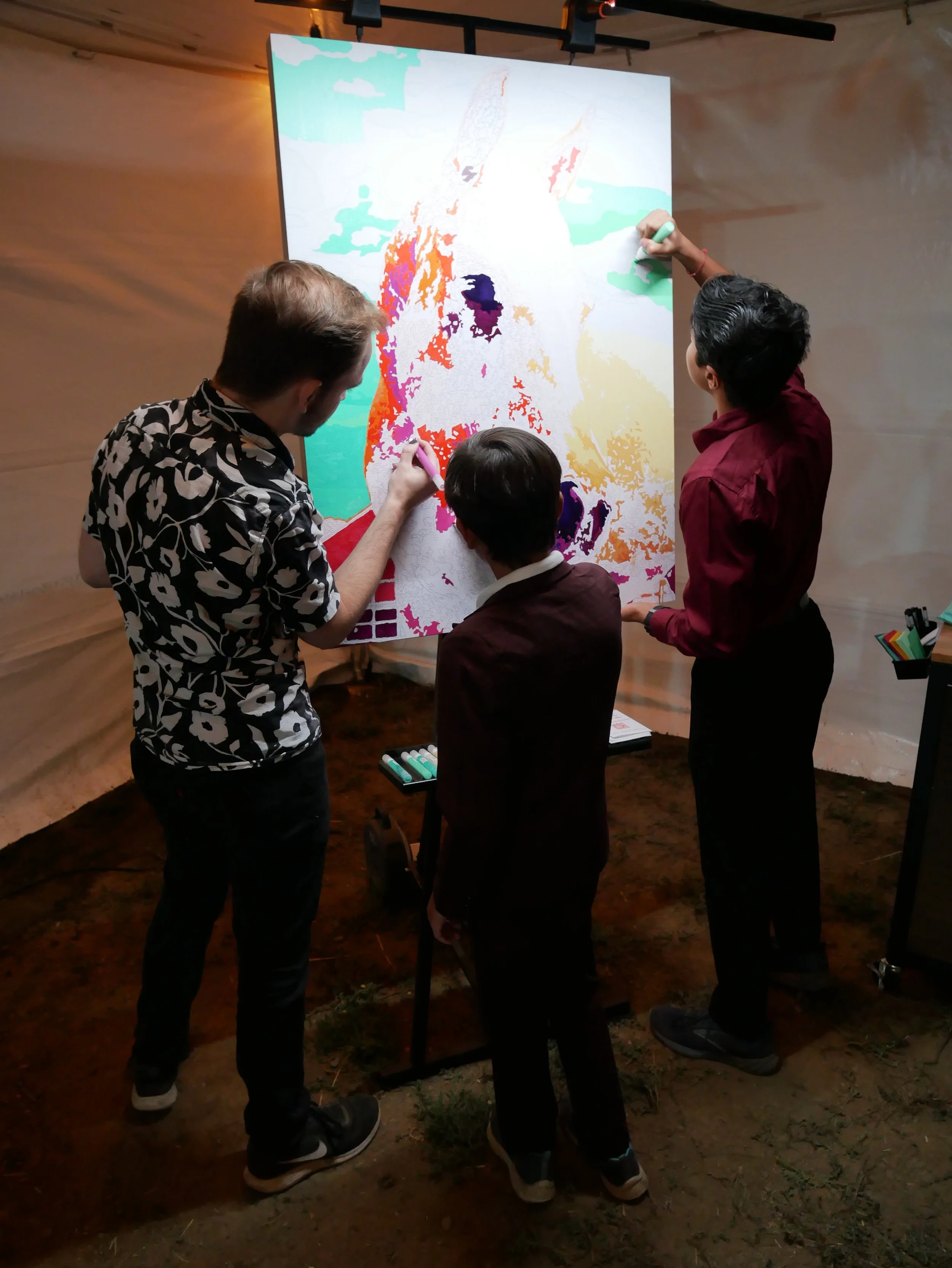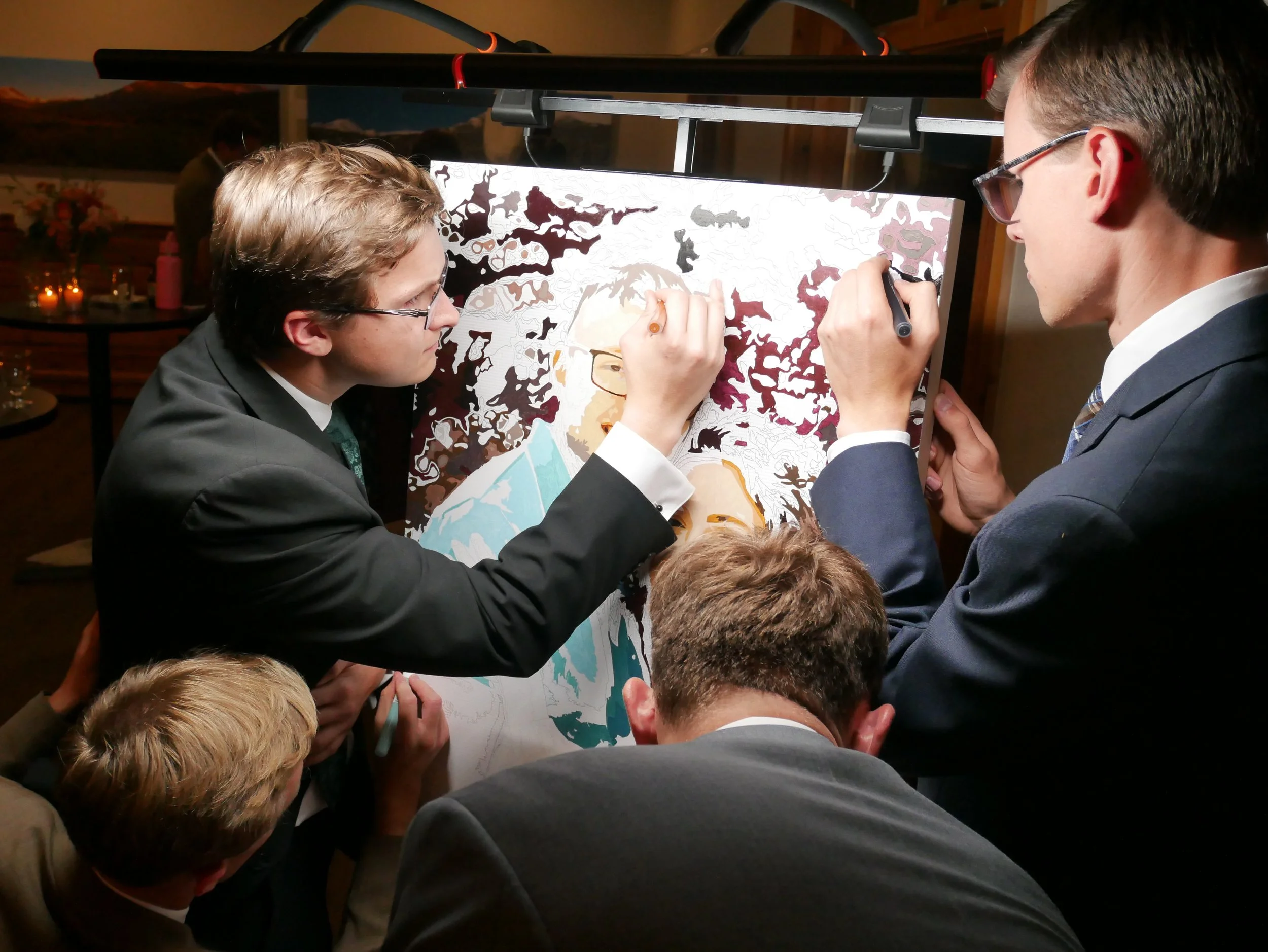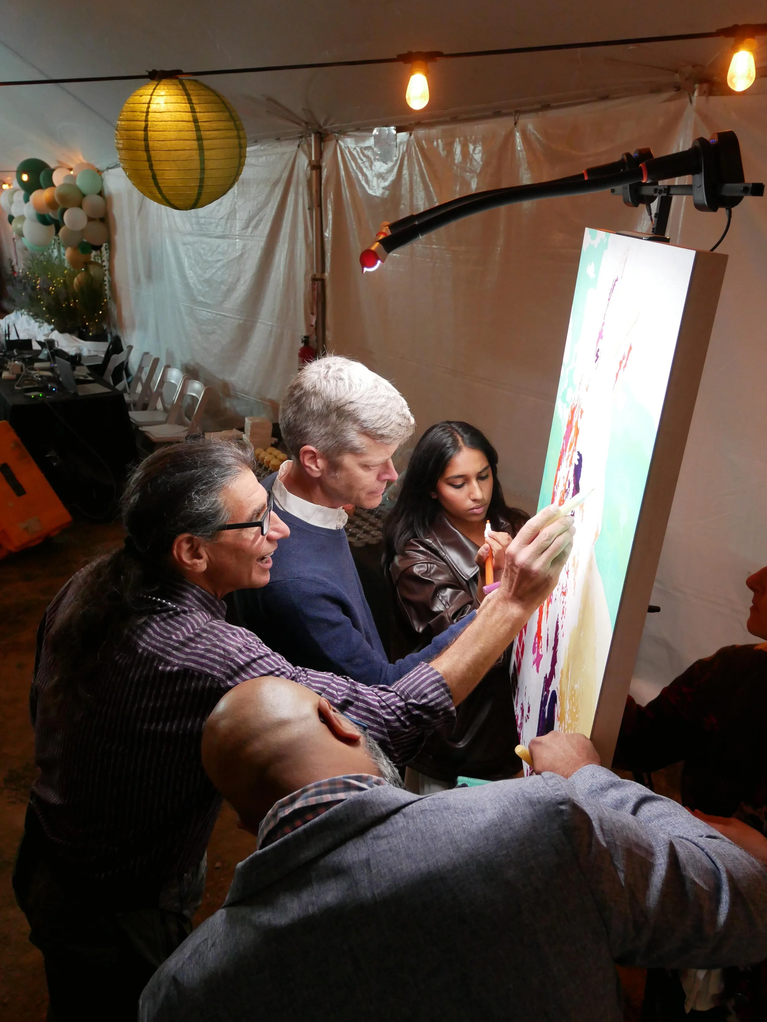 and turns it into a large-format, custom piece of fine art—painted and signed by your guests.